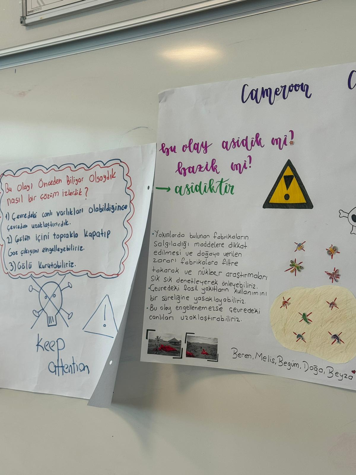 10. Sınıf öğrencilerimiz, Kimya dersinde “Asitler ve Bazlar” ünitesinde kavramsal öğrenmeyi desteklemek için "Cameroon Catastrophe" adlı günlük hayat olayını analiz ederek bu olayın temelinde yatan kimyasal nedeni grup çalışması ile araştırıp poster sunumu gerçekleştirdi.