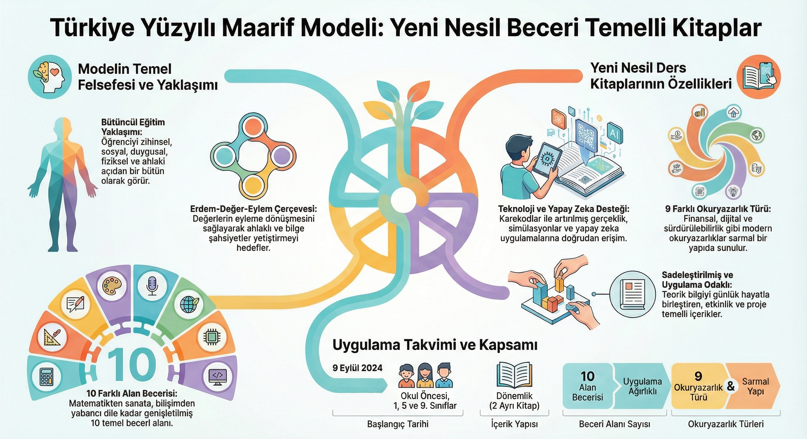 Bu model, öğrenciyi yalnızca bilgiyle donatılan bir birey olarak değil; değerleri olan, düşünebilen, üretebilen ve erdemli bir insan olarak yetiştirmeyi hedefler. “Köklerden geleceğe” anlayışıyla millî ve manevi değerleri korurken çağın gerektirdiği dijital ve akademik becerileri de merkeze alır.
